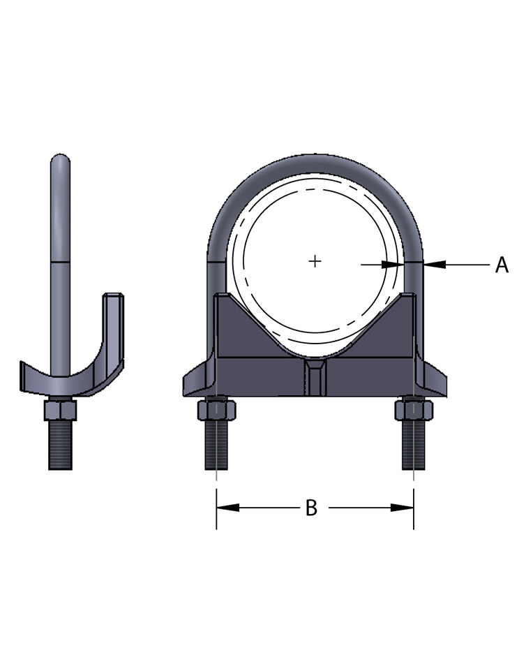Designed for anchoring pipe or conduit at a right angle to structural members.