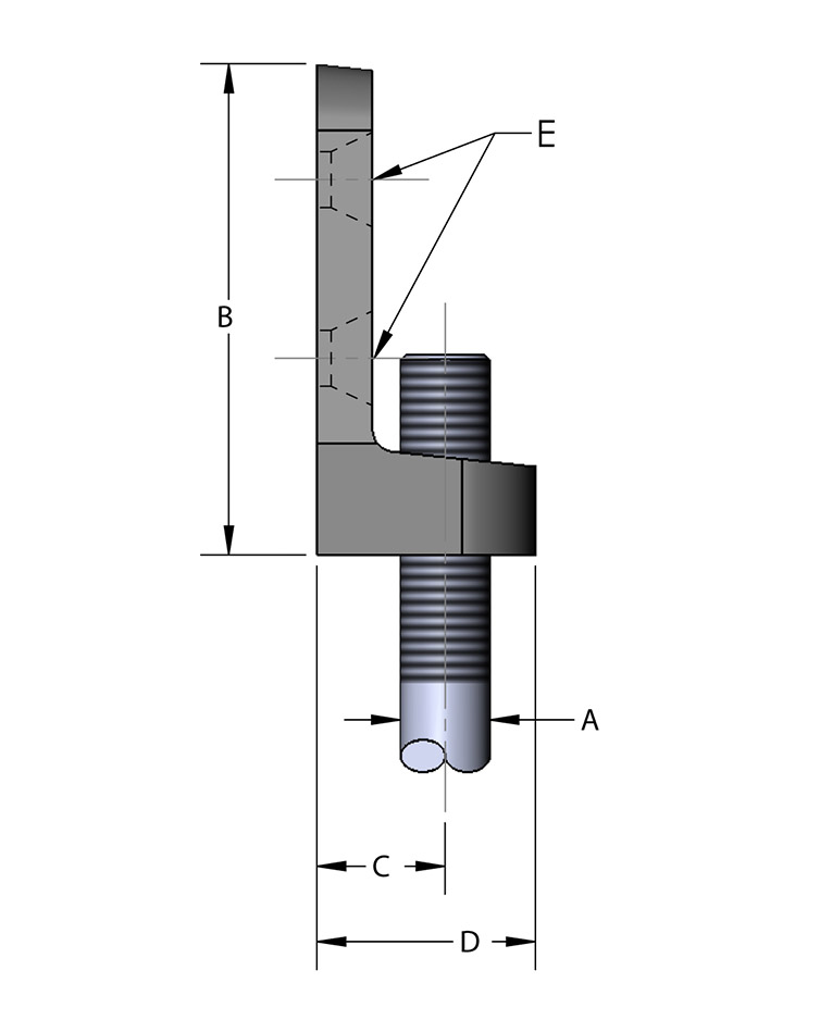 Designed for mounting to sides of wood beams using figure 59 drive screws. Bottom hole is tapped for rod.