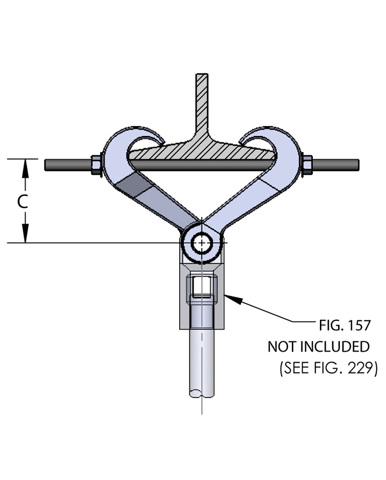 Designed for the suspension of a hanger rod from the center of an I-beam. The clamp accommodates flange widths of 2 3/8" - 7". Flange thickness not to exceed .60 inches. Normally used in conjunction with figure 157 extension piece. Figure 157 provides 1" of vertical adjustment.