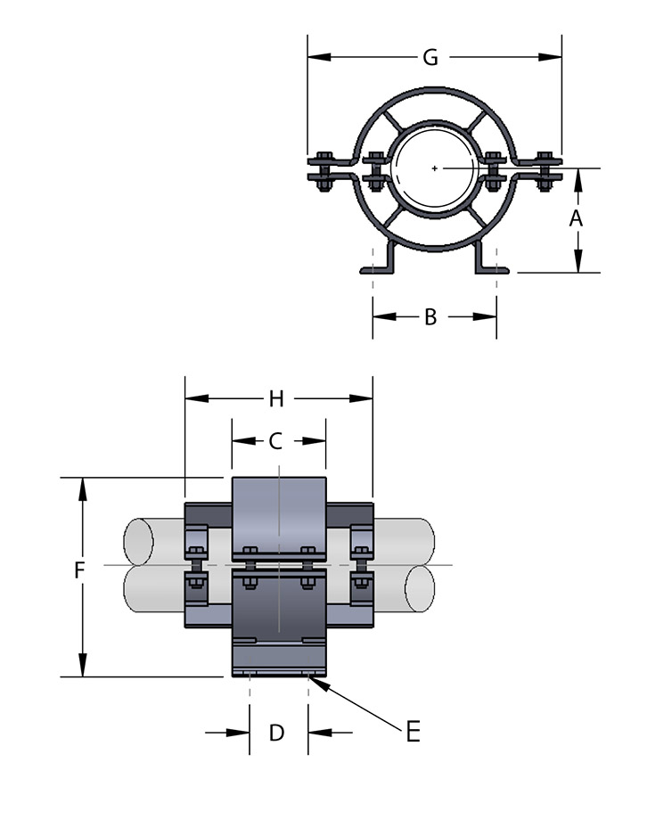 Designed for use with insulated or non-insulated pipe lines to maintain alignment of piping through axial expansion and contraction cycles. Proper alignment of the adjoining pipe is of vital importance in the proper functioning of expansion joints in the line. Pipe guides are not designed to support any piping system weight, therefore additional supports are required. The use of two or more guides on both sides of the expansion joint is recommended to avoid a pivoting effect in the line. Maximum temperature is 750°F.