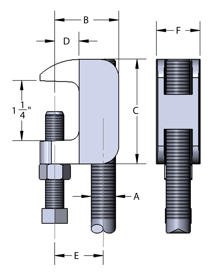 Designed to attach hanger rod to the top flange of a beam or bar.