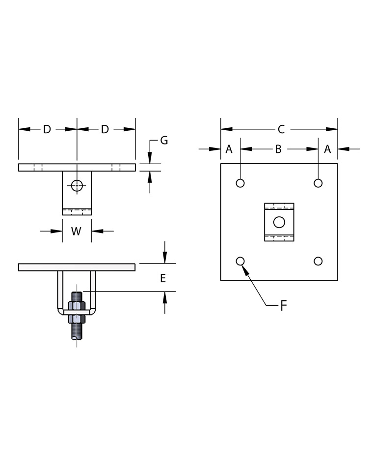 Designed for the attachment of hanger rod to concrete ceilings where vertical adjustment of hanger is desired.