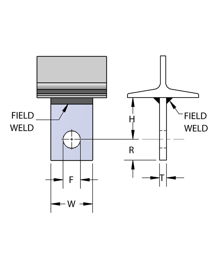 Designed to be welded to structural members and used in conjunction with figure #909 forged steel clevis with pin and cotters.