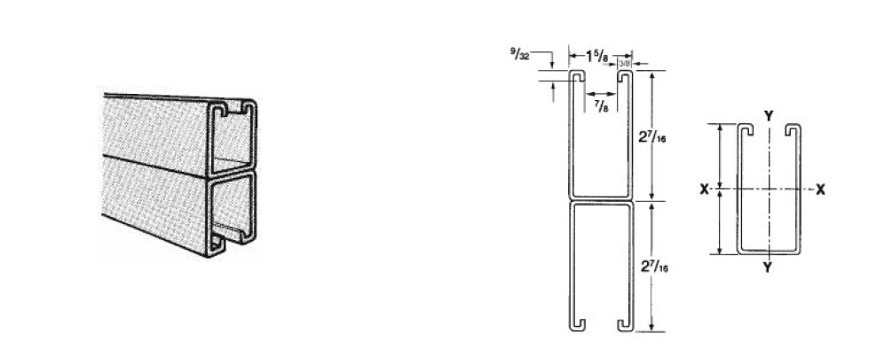 3. The below chart shows beam capacities for strut without holes. For strut with holes, multiply the following: 7/8” diameter Knockout by 82%, Round Hole 3/4” by 85% and Round Hole 9/16” by 88%, Slotted 9/16” x 1-1/8” by 88%, 13/32” x 3” by 90%