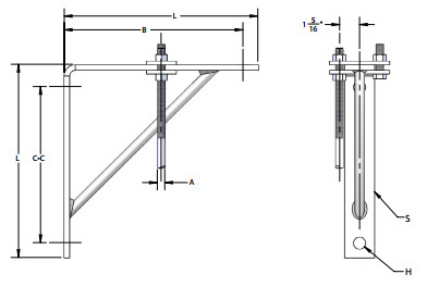 Recommended for the suspension of hanger rod for support of light loads up to 750 lbs. Rod can be suspended at any point along the length of the bracket, thus providing horizontal adjustment, using figure #820C clip which consists of two steel plates joined by a bolt and nut in one end.