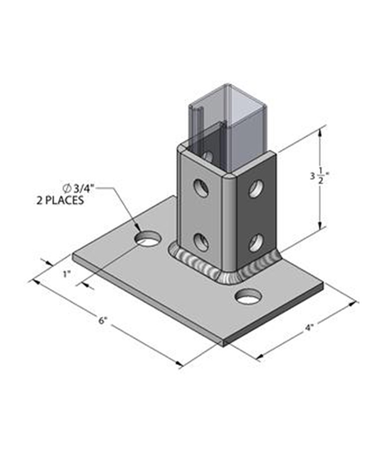 Post Base – Flush Mount For 1-5/8” x 1-5/8” Strut 4” x 6” Base – Fig. 9090PB