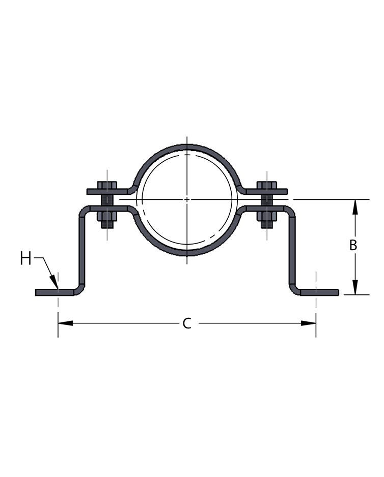 Designed for supporting horizontal or vertical pipe lines at a fixed distance from wall or floor. This clamp can be furnished with "B" dimensions to suit field conditions.