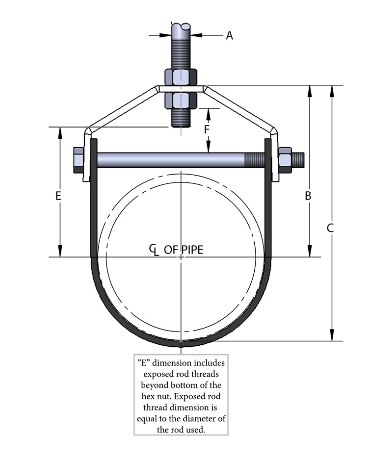 āEā dimension includes exposed rod threads beyond bottom of the hex nut.