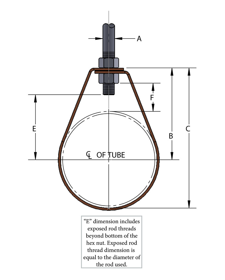 "E" dimension includes exposed rod threads beyond bottom of the hex nut.